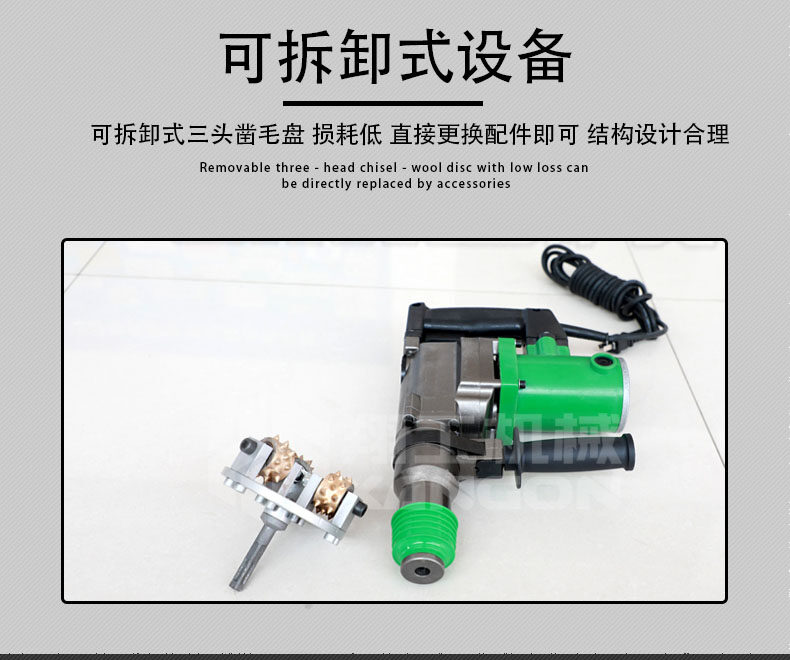 電動手持式鑿毛機 金剛石三頭鑿毛設備 小型水泥路面拉毛機。該鑿毛機型主要應用于高鐵、高速公路橋面、隧道、水利水電、核電、市政道橋、大型集裝箱場地、停車場、室內(nèi)外混凝土地面翻新除險加固等混凝土面層鑿毛工程